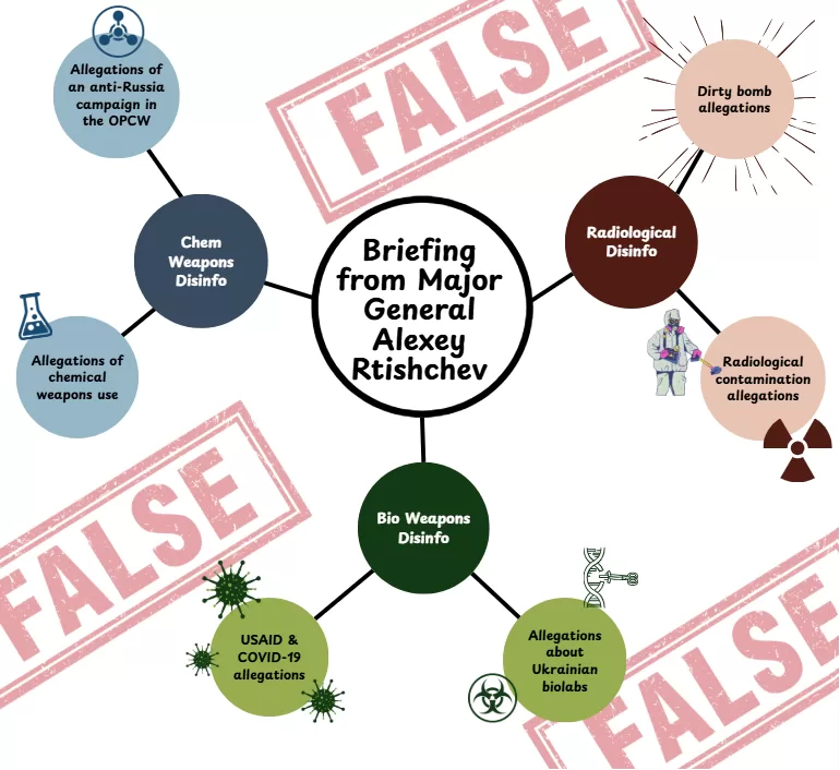 On December 12, 2025, Major General Alexey Rtishchev, Deputy Chief of Russia’s Radiation, Chemical, and Biological Protection Troops gave a briefing that contained numerous false allegations pertaining to biological, chemical, and radiological weapons. The Global Partnership’s Counter WMD Disinformation Initiative has systematically debunked a selection of allegations in the briefing while also drawing attention to the broader tactics used in such campaigns. By learning to recognize these tactics, the global nonproliferation and disarmament community can build resilience to CBRN disinformation, safeguarding vital multilateral agreements and norms.