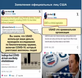 The briefing also repeats the familiar “biolabs” disinformation narrative, claiming that the U.S. government was using Ukraine as a testing ground for dangerous and illegal biological experiments. Rtishchev claims that such activities have been confirmed by statements from U.S. government officials and scientists. The statements he references, however, are either deliberately misinterpreted or made by individuals with irrelevant or dubious qualifications. This is a common tactic designed to make false claims appear more legitimate or trustworthy.