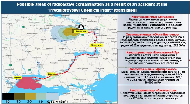 In the briefing, a uranium legacy site in Kamianske is presented as an urgent radiological threat. The briefing claims that the Prydniprovskyi Chemical Plant poses dangerous contamination risks for the Dnipro basin and the Black Sea. The plant is indeed a Soviet-era uranium processing complex with long-term remediation needs. However, these are longstanding environmental and industrial safety challenges common for Soviet legacy sites and exacerbated by Russia’s invasion. The briefing repackages these issues as “evidence” of an acute crisis. Available assessments report the issue as a manageable engineering and remediation task rather than an acute catastrophe scenario. The briefing uses fear mongering to stoke concerns about a radiological emergency, portraying Ukraine as reckless and irresponsible with radioactive material in an attempt to discredit Russia’s opponent.