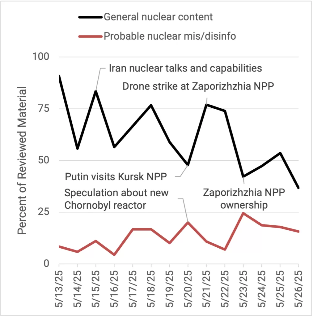 - Mention of Putin’s visit to the Kursk NPP was present but did not receive as much attention as chatter about Iran’s nuclear capabilities or posts about strikes against Zaporizhzhia NPP.
