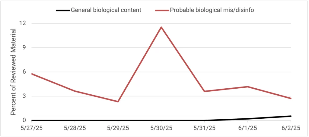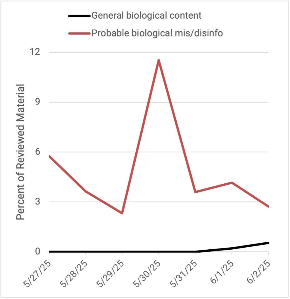 Narrative Trend Monitoring: As part of the GP efforts to identify, understand, and mitigate hostile CBRN disinformation, the Atlantic Council’s Digital Forensic Research Lab (DFRLab) conducts a bimonthly search query of state-sponsored or state-adjacent disinformation narratives. This real-time detection allows the initiative to swiftly recognize, isolate and respond to disinformation narratives and networks as they occur.