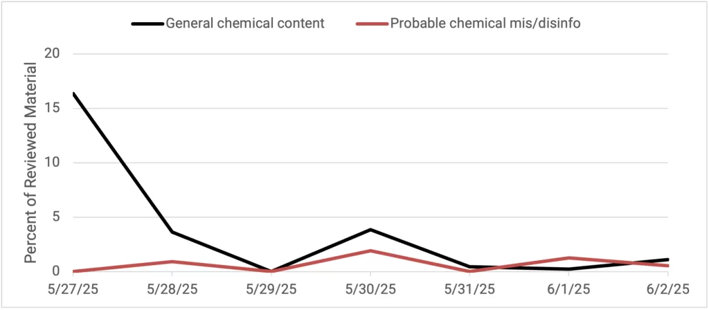 This monitoring period did not identify chemical chatter or narratives, outside of a few neutral mentions of use of chemical weapons in Syria.