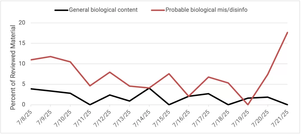 Narrative Trend Monitoring: As part of the GP efforts to identify, understand, and mitigate hostile CBRN disinformation, the Atlantic Council’s Digital Forensic Research Lab (DFRLab) conducts a bimonthly search query of state-sponsored or state-adjacent disinformation narratives. This real-time detection allows the initiative to swiftly recognize, isolate and respond to disinformation narratives and networks as they occur.