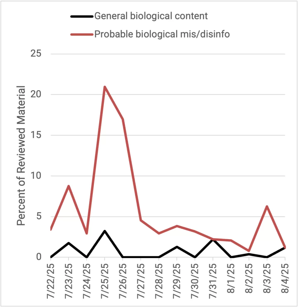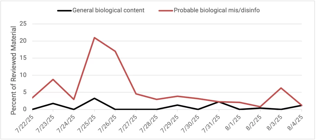 Narrative Trend Monitoring: As part of the GP efforts to identify, understand, and mitigate hostile CBRN disinformation, the Atlantic Council’s Digital Forensic Research Lab (DFRLab) conducts a bimonthly search query of state-sponsored or state-adjacent disinformation narratives. This real-time detection allows the initiative to swiftly recognize, isolate and respond to disinformation narratives and networks as they occur.