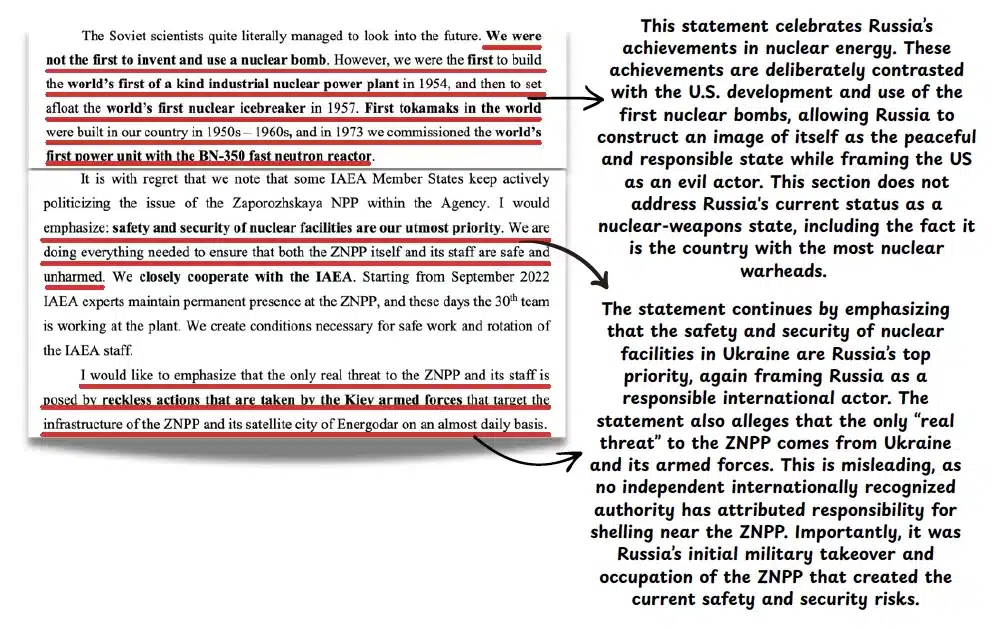 Framing Russia as a champion of nonproliferation and a guarantor of nuclear energy and security